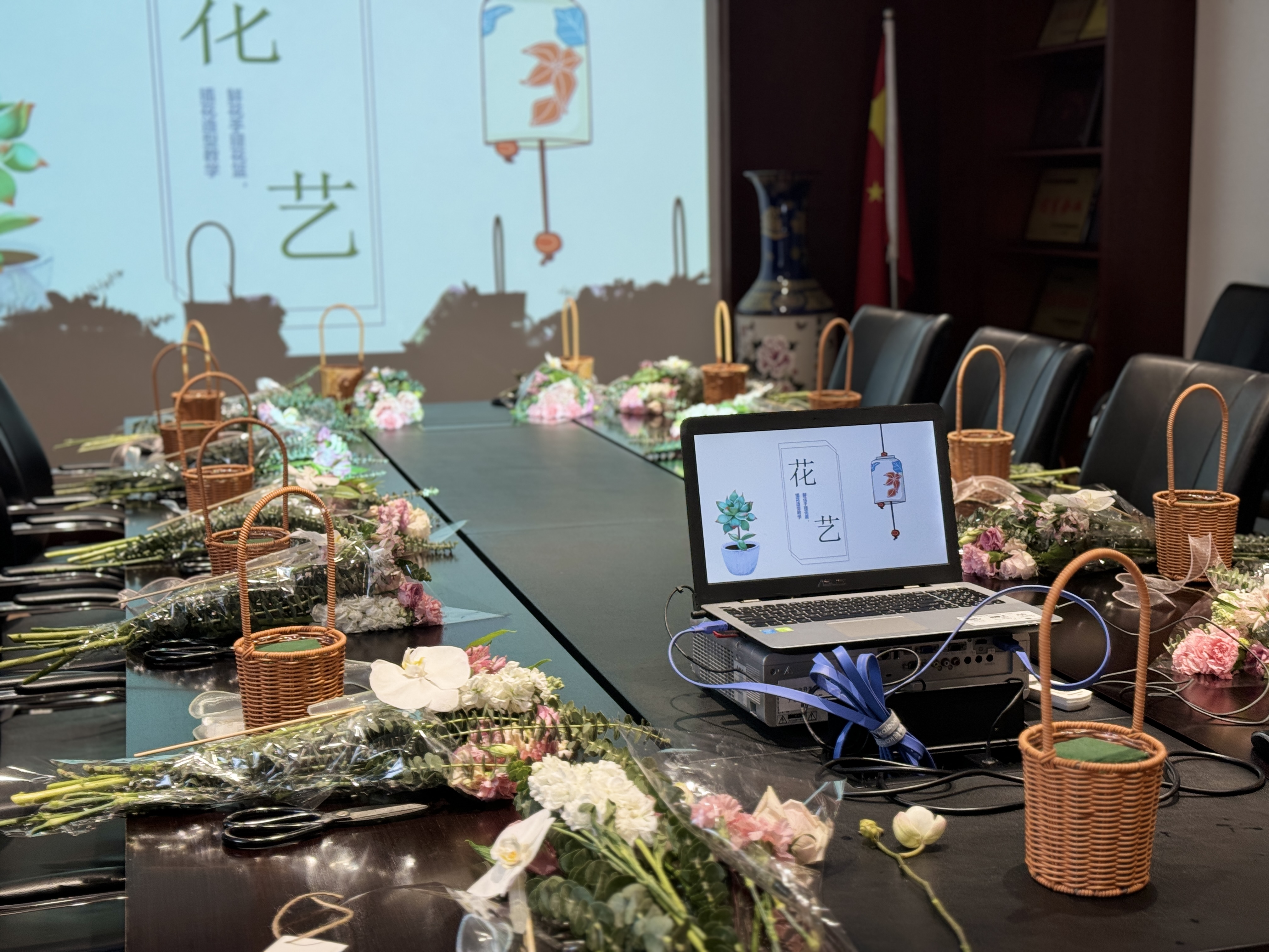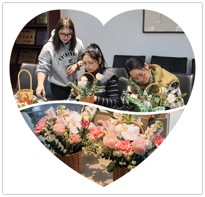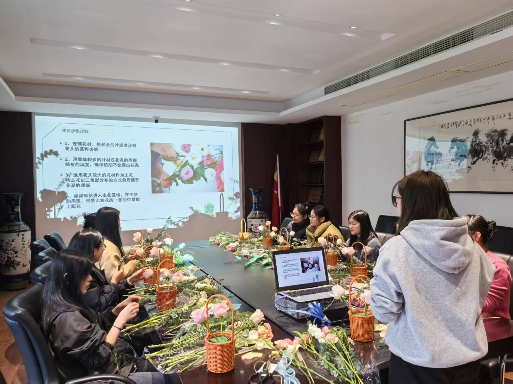 一朵朵鲜花便在她们的巧手下组合成了一个精致的花篮。每一件作品都独具匠心,充满了创意与美感。通过亲手制作花艺作品,大家不仅提升了审美能力,更在合作与交流中增进了同事间的友谊与团队凝聚力。
